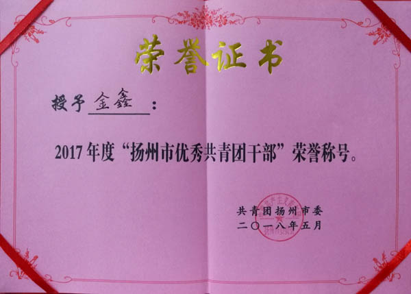 揚州商城團支部書記榮獲市級優(yōu)秀團干稱號
