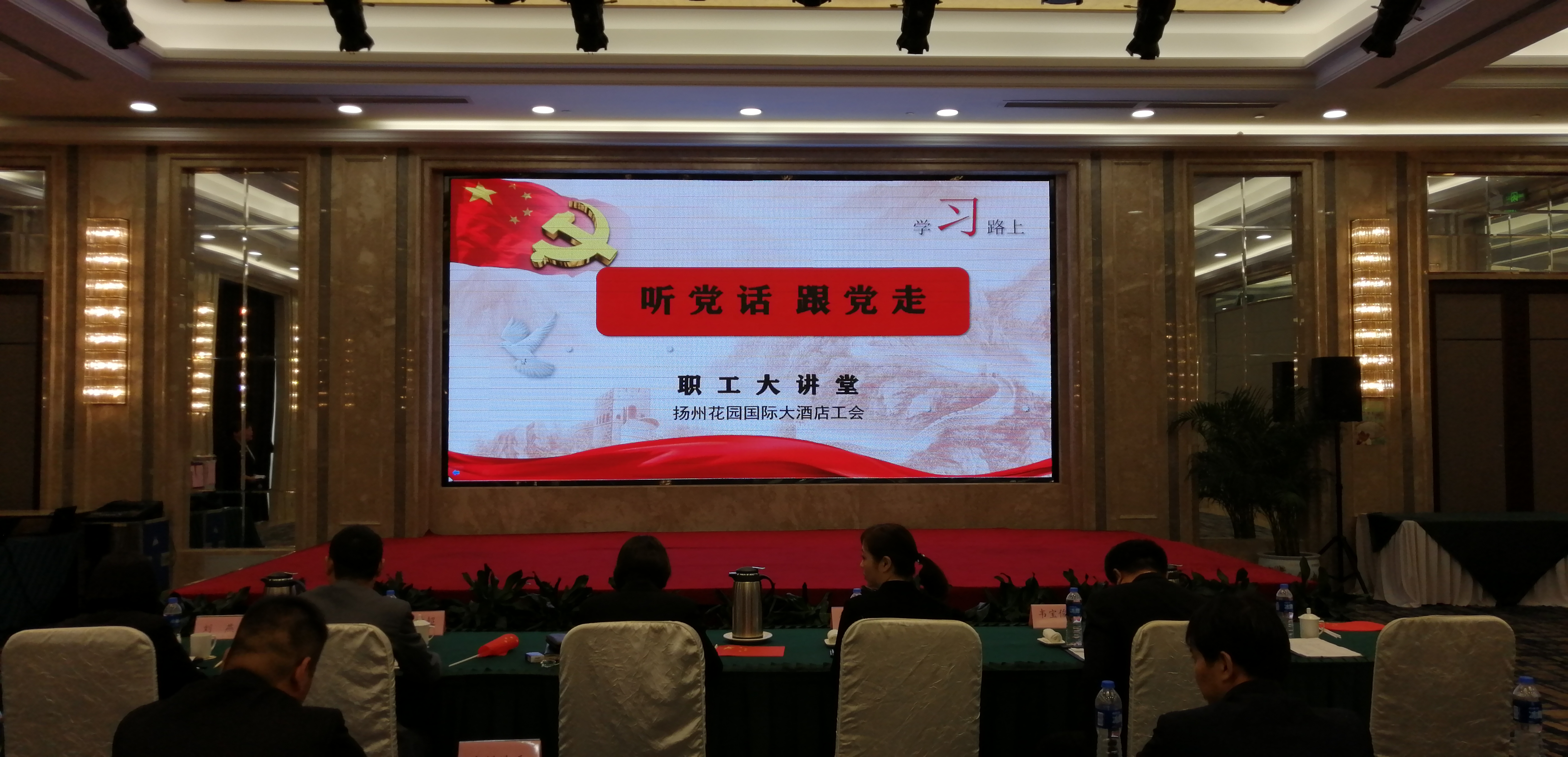 為迎接新中國(guó)成立70周年,全面貫徹習(xí)近平新時(shí)代中國(guó)特色社會(huì)主義思想和黨的十九大精神,大力弘揚(yáng)社會(huì)主義核心價(jià)值觀,揚(yáng)州花園國(guó)際大酒店工會(huì)于7月22日上午組織舉辦了“聽黨話、跟黨走、不忘初心、牢記使命”職工大講堂活動(dòng),酒店全體員工參加了本次活動(dòng)。 全體黨員以一首“沒有共產(chǎn)黨就沒有新中國(guó)”的洪亮歌曲拉開了職工大講堂的序幕。活動(dòng)中,客房部黨員代表?xiàng)罴t霞同志以“毫不畏懼,不向困難說不”為主題向大家分享了一名新時(shí)代共產(chǎn)黨員如何去繼承和發(fā)揚(yáng)先輩們迎難而上的精神。優(yōu)秀黨員代表及優(yōu)秀員工代表們還分別圍繞酒店茉莉花真誠(chéng)文化建設(shè)和學(xué)習(xí)碧水灣“五四”文化精髓等主題分享了工作中的先進(jìn)事跡,同時(shí)還通過禮儀風(fēng)采展示的活動(dòng),向大家展示禮儀文明規(guī)范。 酒店黨支部書記衛(wèi)文同志總結(jié)發(fā)言號(hào)召大家“人人爭(zhēng)當(dāng)宣講員”,黨員干部要起到先鋒表率作用,牢記使命,不忘初心,花園人將以高質(zhì)量、高水平的發(fā)展為新中國(guó)成立70周年獻(xiàn)禮。此次活動(dòng)的開展,深入弘揚(yáng)了社會(huì)主義核心價(jià)值觀,也進(jìn)一步提升了酒店企業(yè)文化和文明禮儀,提高了企業(yè)凝聚力和向心力。 |