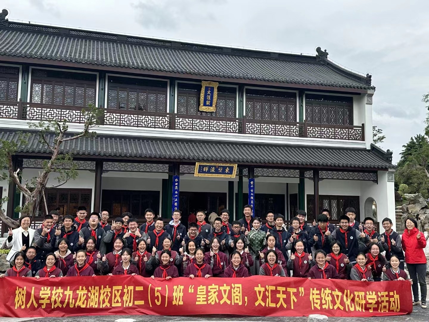 4月24日,文匯閣迎來(lái)開(kāi)業(yè)后第一批研學(xué)團(tuán)隊(duì),樹(shù)人中學(xué)九龍湖校區(qū)部分師生50余人走進(jìn)文匯閣,參加“皇家書(shū)閣,文匯天下”傳統(tǒng)文化研學(xué)活動(dòng),親近《四庫(kù)全書(shū)》,體驗(yàn)書(shū)香氣息,分享運(yùn)河故事。