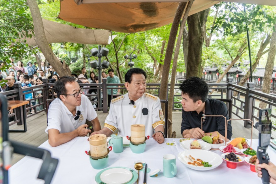 7月30日中午,董宇輝來(lái)到中國(guó)淮揚(yáng)菜博物館,品嘗正宗盧氏鹽商早茶。席間,賞盛夏小雨、品淮揚(yáng)美食、談鹽商文化、觀大師烹制,依傍揚(yáng)州鹽商第一樓,體驗(yàn)揚(yáng)州慢生活。