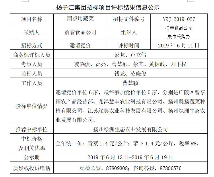 備注:投標(biāo)人對(duì)招標(biāo)結(jié)果有疑問(wèn)的,應(yīng)采用書面形式,寫清質(zhì)疑內(nèi)容、具體事實(shí)和理由并附相關(guān)證據(jù)材料,由法定代表人簽字并加蓋單位公章后在公示期內(nèi)送達(dá)指定部門。 揚(yáng)子江集團(tuán)集中采購(gòu)辦 2019年6月13日 |