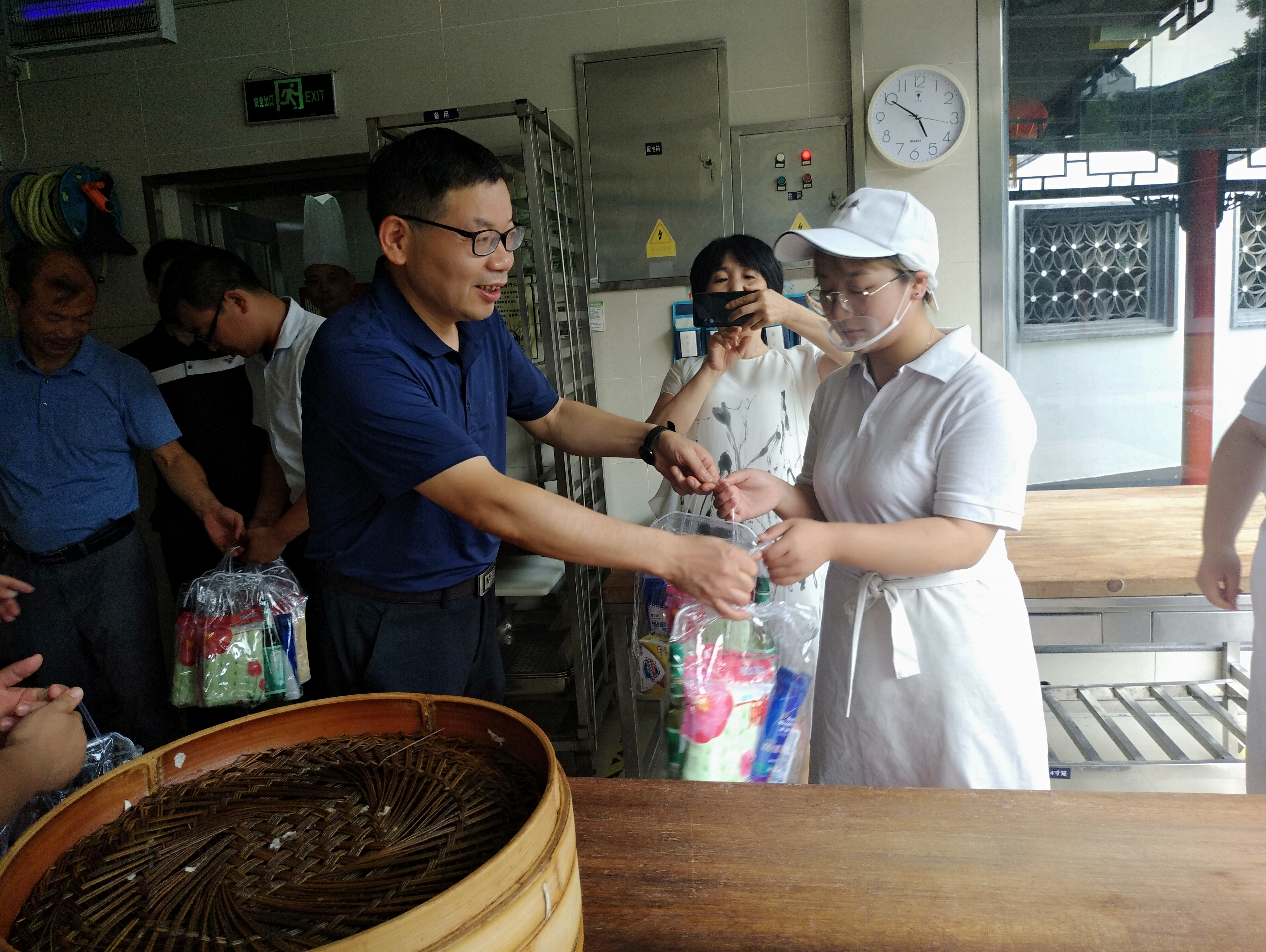夏日炎炎,持續(xù)高溫,7月30日下午,揚(yáng)州市總工會(huì)副主席陳維權(quán),市工交財(cái)貿(mào)工會(huì)主任凌月明、副主任王寬道一行來到冶春御馬頭店,為高溫之下堅(jiān)守崗位的冶春一線員工送上降溫解暑慰問品。集團(tuán)黨委辦副主任高亮及冶春餐飲公司相關(guān)負(fù)責(zé)人陪同參加慰問。 慰問中,工會(huì)領(lǐng)導(dǎo)與一線員工進(jìn)行了親切交談,仔細(xì)了解一線員工的工作情況。冶春餐飲公司副總廚師倪秋香主動(dòng)向總工會(huì)領(lǐng)導(dǎo)匯報(bào)了“倪秋香勞模創(chuàng)新工作室”的工作動(dòng)態(tài),陳維權(quán)對(duì)冶春面點(diǎn)師傅精湛的手藝、起早帶晚默默奉獻(xiàn)的精神表示贊揚(yáng)和感謝,叮嚀他們要注意勞逸結(jié)合,合理安排工作,把好食品質(zhì)量關(guān),守好食品安全紅線。(冶春餐飲 王美) |
