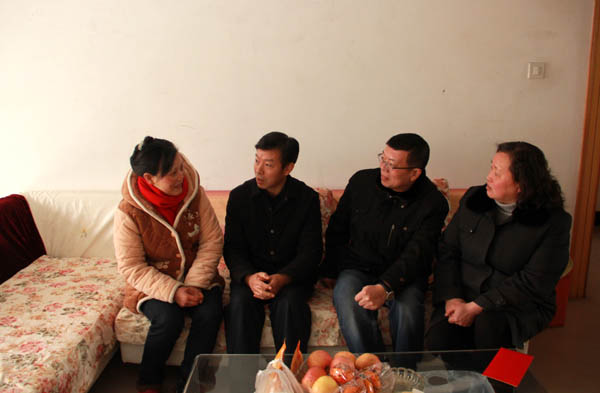 新春慰問(wèn)送溫暖,殷殷真情體關(guān)懷。2018年春節(jié)即將來(lái)臨,為幫助困難職工度過(guò)難關(guān),過(guò)上一個(gè)快樂(lè)祥和的新年,2月7日,集團(tuán)副總經(jīng)理王向榮在揚(yáng)州商城總經(jīng)理江希琪等的陪同下,上門(mén)慰問(wèn)大病術(shù)后休養(yǎng)的商城員工王明芳,為她送上集團(tuán)領(lǐng)導(dǎo)的關(guān)懷和新春的祝福。 在王明芳的家中,江希琪介紹了她的情況,王向榮與其親切交談, 通過(guò)拉家常、問(wèn)冷暖,詳細(xì)了解了王明芳的家庭生活現(xiàn)狀,并給她送去了慰問(wèn)金。王向榮囑咐王明芳要休養(yǎng)好身體,家庭生活方面如有困難,可以及時(shí)向組織反映,組織上會(huì)給予幫助,同時(shí)還鼓勵(lì)她要保持健康心態(tài)和樂(lè)觀精神,積極面對(duì)未來(lái)。王明芳對(duì)領(lǐng)導(dǎo)的關(guān)懷和鼓勵(lì)非常感動(dòng),表達(dá)了感激之情,表示今后會(huì)以積極的心態(tài)面對(duì)生活,克服困難,不辜負(fù)領(lǐng)導(dǎo)們的關(guān)懷和期望。 一直以來(lái),商城把幫扶困難職工作為一項(xiàng)重要的工作,每年都會(huì)開(kāi)展困難職工摸底工作,掌握具體情況,切實(shí)幫助他們排憂(yōu)解難。集團(tuán)領(lǐng)導(dǎo)則以重大節(jié)日走訪(fǎng)活動(dòng)為契機(jī),親自帶隊(duì)走訪(fǎng)慰問(wèn)困難職工,真正把組織關(guān)懷送進(jìn)職工心中,讓他們感受到大家庭的溫暖。(揚(yáng)州商城) |
