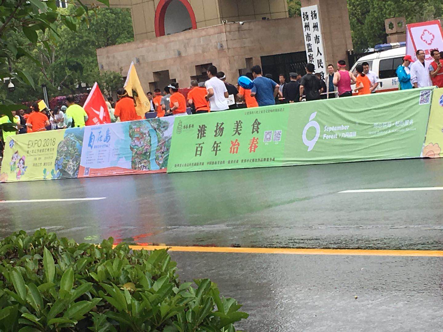 同時,揚州商城組織部分志愿者來到東關古渡迷你馬拉松終點站為揚馬加油。(集團辦公室 冶春食品 置業(yè)公司) |