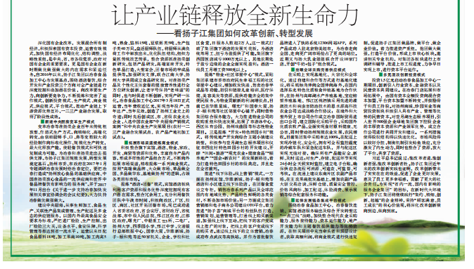 6月1日,《揚州日報》A7版國資通訊專欄全版報道集團近年來改革創(chuàng)新、轉型發(fā)展成果,引起較大反響。 近年來,集團以冶春食品加工配送中心為基點,圍繞酒店餐飲、綜合開發(fā)和產業(yè)投資三個業(yè)務方向,對全產業(yè)鏈進行改革融合發(fā)展,在產品、服務、人員、市場等各方面均進行集成取得了階段性成效。 下一步,集團將以“在細微處下功夫 在平實中見功力”的精神推進高質量發(fā)展新局面,助推企業(yè)做大做強。(集團辦公室)