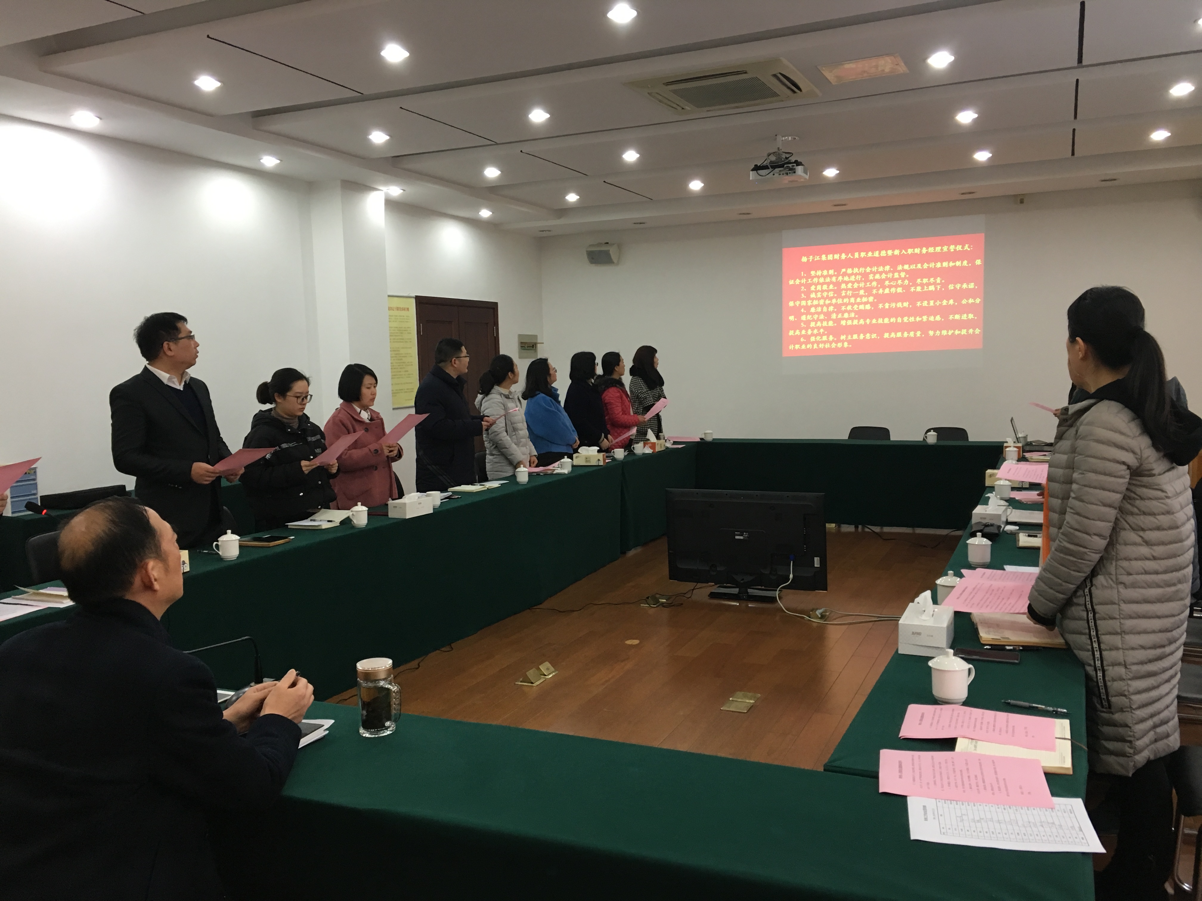 3月12日下午,集團在二樓會議室召開2019年度財務(wù)工作會議,會上舉行了集團財務(wù)人員職業(yè)道德暨新入職財務(wù)經(jīng)理宣誓儀式。集團總經(jīng)理蔡余良、紀(jì)委書記劉惠謙出席會議。集團財務(wù)部及委派財務(wù)經(jīng)理參會。 劉惠謙對委派財務(wù)經(jīng)理提出三點要求:一是遵守財經(jīng)紀(jì)律,二是善于專研業(yè)務(wù),三是認真履職盡責(zé)。 蔡余良對集團財務(wù)工作提出了五點希望:一要以集團為榮,增強自豪感;二是不斷學(xué)習(xí),增強危機感;三要發(fā)揮作用,增強使命感;四是勇于擔(dān)當(dāng),增強責(zé)任感;五是服從安排,增強大局觀。 最后,財務(wù)部針對當(dāng)前財務(wù)重點工作進行了布置。 |